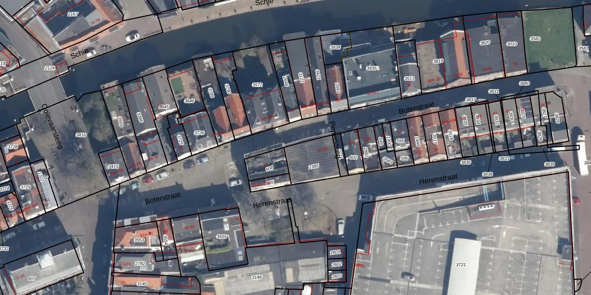 Boterstraat 69 is gelegen op kadastraal perceel SDM01B2385. Deze kadastrale aanduiding is uniek en wordt gebruikt door het Kadaster om eigendomsrechten en andere zakelijke rechten vast te leggen. Het perceel maakt onderdeel uit van de kadastrale gemeente Schiedam.