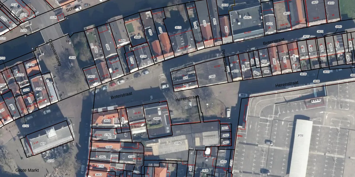 Boterstraat 73-A-1 is gelegen op kadastraal perceel SDM01B605. Deze kadastrale aanduiding is uniek en wordt gebruikt door het Kadaster om eigendomsrechten en andere zakelijke rechten vast te leggen. Het perceel maakt onderdeel uit van de kadastrale gemeente Schiedam.