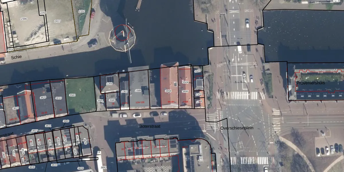 Het perceel waarop het adres ligt is SDM01-B-3494. De afkorting 'SDM01' staat voor kadastrale gemeente Schiedam. Het perceel is 445 m² groot. Dat is kleiner dan de gemiddelde perceeloppervlakte in Schiedam, dat op 1011,59 m² ligt. De grootste perceeloppervlakte in de kadastrale gemeente is 53,5 ha. De kleinste oppervlakte bedraagt 0 m². Er zijn 8 adressen aanwezig op het perceel. In de Basisregistratie Kadaster (BRK) werden de grenzen van het perceel geregistreerd op 18-07-2007.