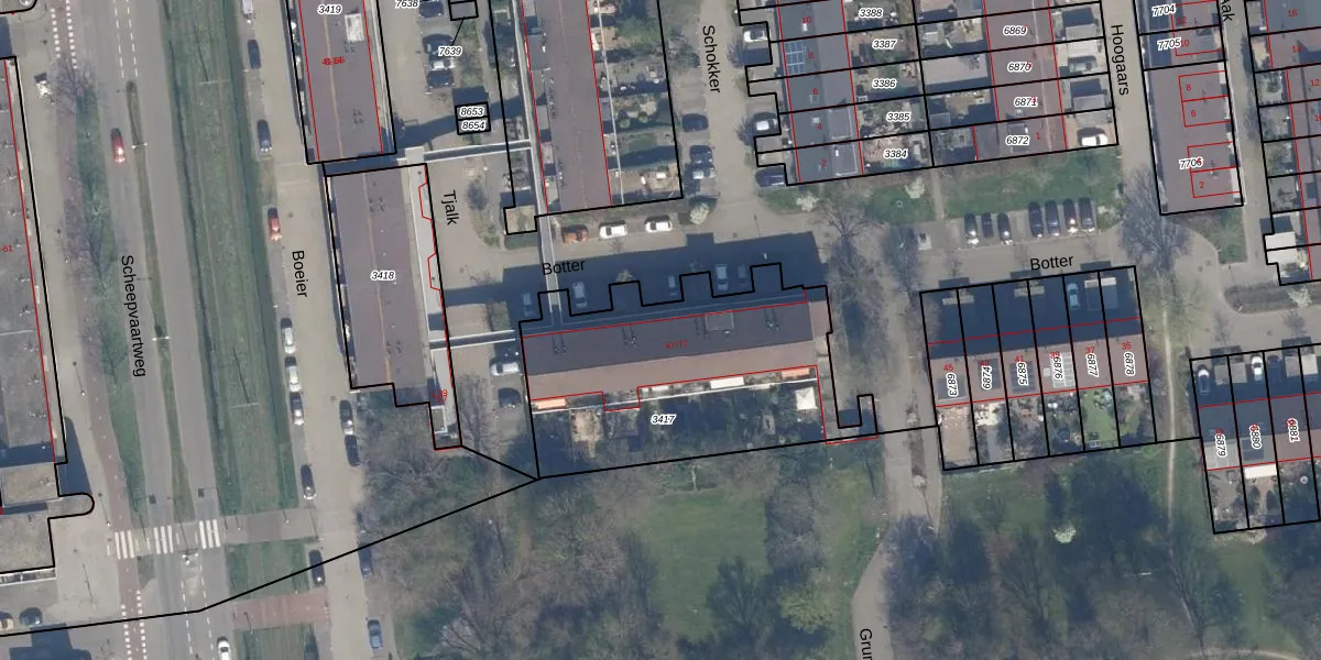 Het perceel waarop Botter 73 staat heeft een oppervlakte van 1210 m². Dit is een zeer groot perceel. De perceeloppervlakte wordt geregistreerd door het Kadaster. Gedetailleerde informatie over de maten van dit perceel kunt u vinden in het rapport Kadastrale kaart met maatvoering van Botter 73.