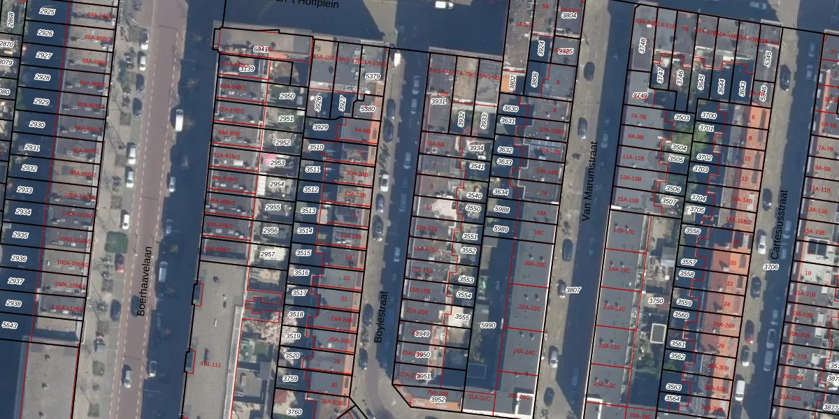 Gebruik de zoekbalk of klik op een perceel voor informatie over de adressen binnen dit perceel.