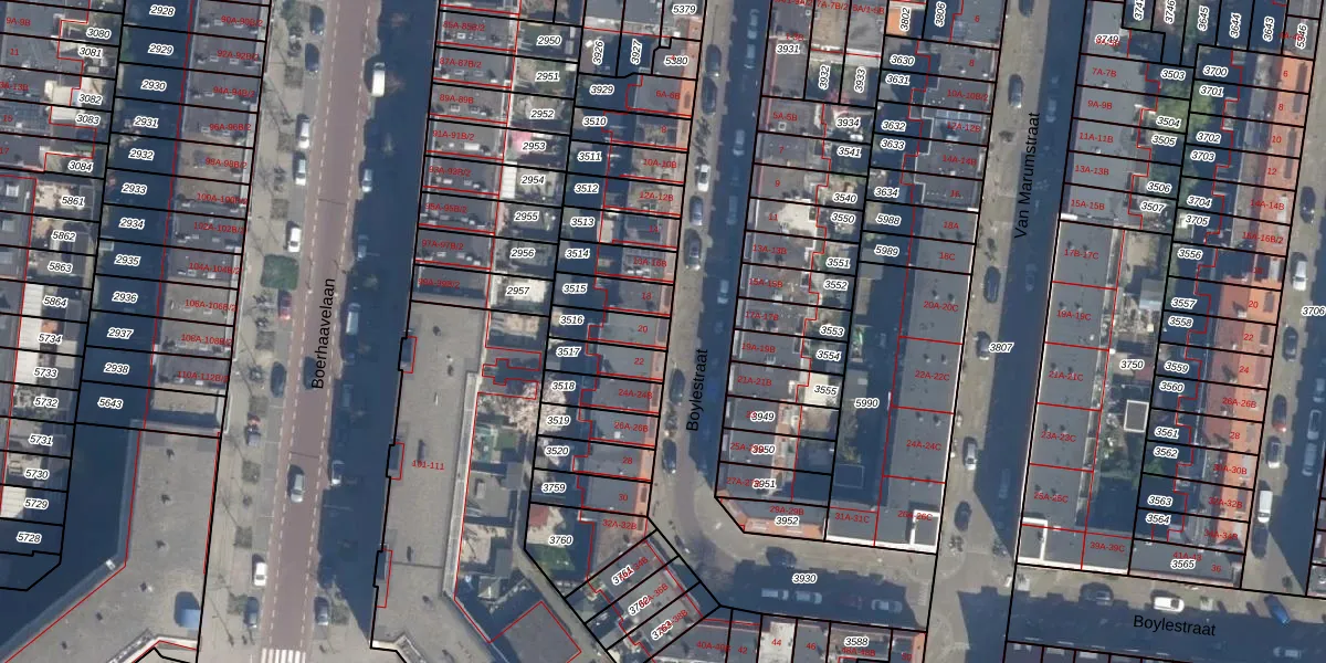 Het perceel waarop Boylestraat 20 staat heeft een oppervlakte van 90 m². Dit is een klein perceel. De perceeloppervlakte wordt geregistreerd door het Kadaster. Gedetailleerde informatie over de maten van dit perceel kunt u vinden in het rapport Kadastrale kaart met maatvoering van Boylestraat 20.