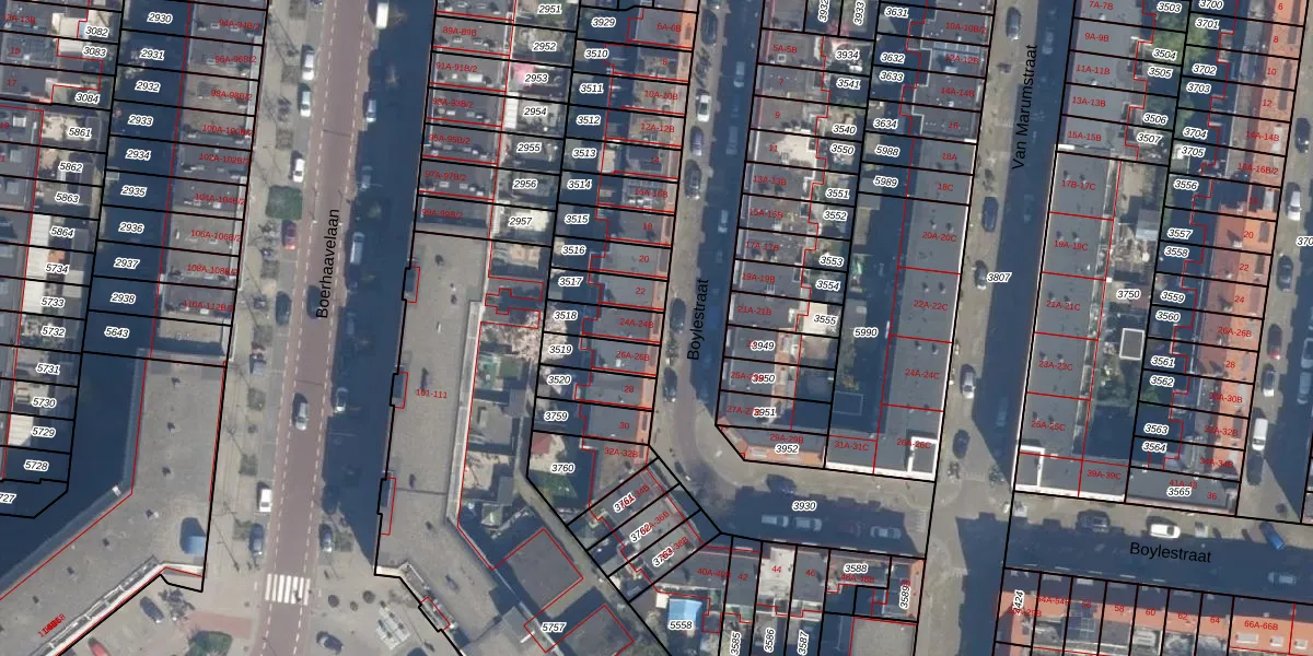 Het perceel waarop Boylestraat 24-B staat heeft een oppervlakte van 90 m². Dit is een klein perceel. De perceeloppervlakte wordt geregistreerd door het Kadaster. Gedetailleerde informatie over de maten van dit perceel kunt u vinden in het rapport Kadastrale kaart met maatvoering van Boylestraat 24-B.
