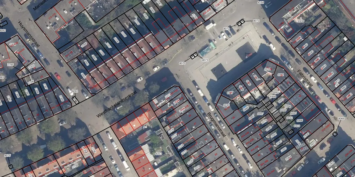 Het perceel waarop Brugmanstraat 55-B staat heeft een oppervlakte van 110 m². Dit is een middelgroot perceel. De perceeloppervlakte wordt geregistreerd door het Kadaster. Gedetailleerde informatie over de maten van dit perceel kunt u vinden in het rapport Kadastrale kaart met maatvoering van Brugmanstraat 55-B.
