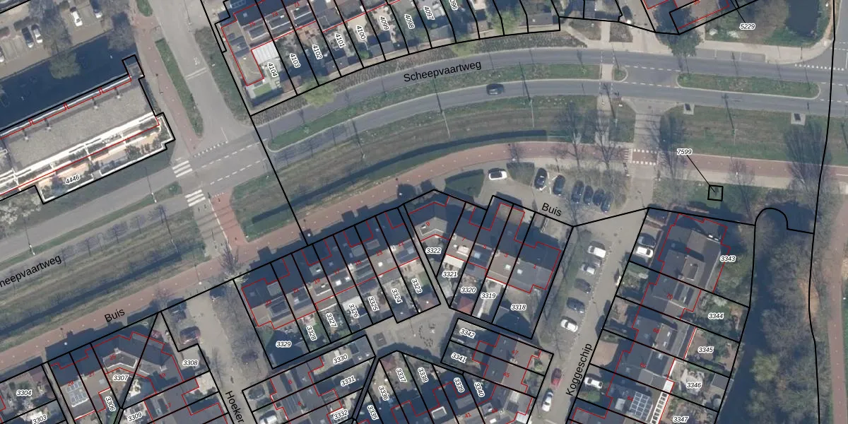 Gebruik de zoekbalk of klik op een perceel voor informatie over de adressen binnen dit perceel.