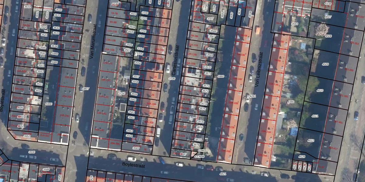 Het perceel waarop Cartesiusstraat 21-A staat heeft een oppervlakte van 86 m². Dit is een klein perceel. De perceeloppervlakte wordt geregistreerd door het Kadaster. Gedetailleerde informatie over de maten van dit perceel kunt u vinden in het rapport Kadastrale kaart met maatvoering van Cartesiusstraat 21-A.