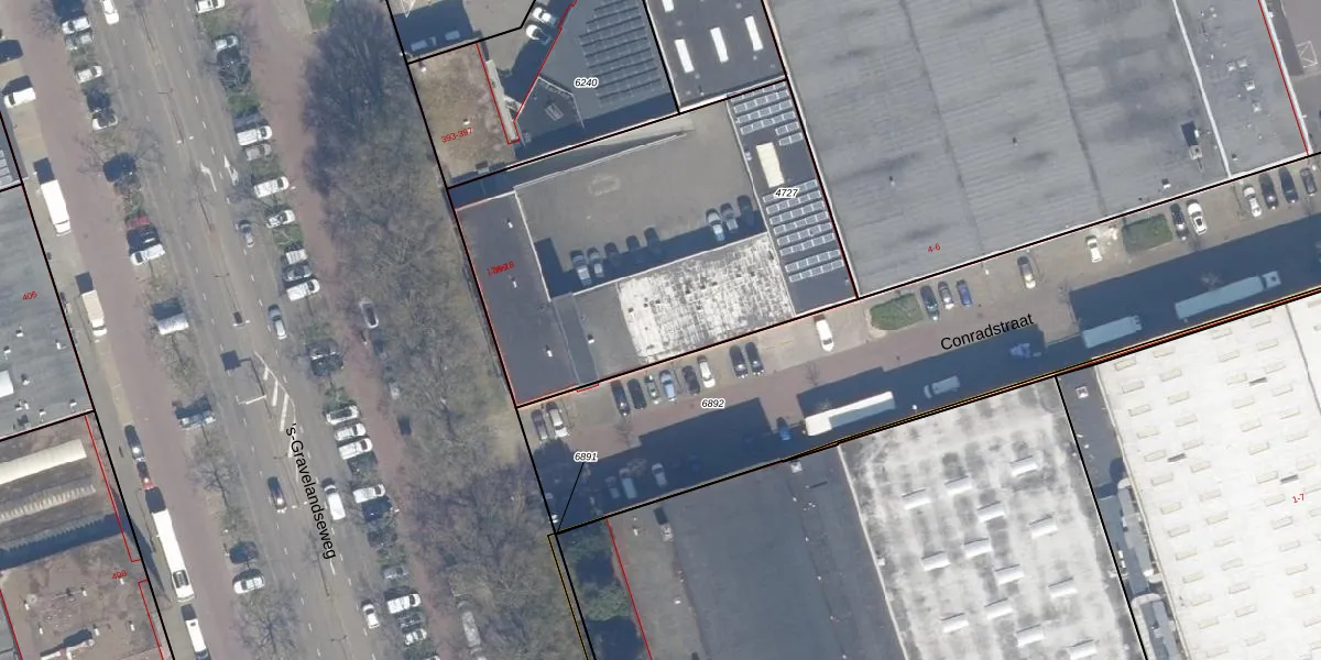 Het perceel waarop Conradstraat 14 staat heeft een oppervlakte van 1896 m². Dit is een zeer groot perceel. De perceeloppervlakte wordt geregistreerd door het Kadaster. Gedetailleerde informatie over de maten van dit perceel kunt u vinden in het rapport Kadastrale kaart met maatvoering van Conradstraat 14.