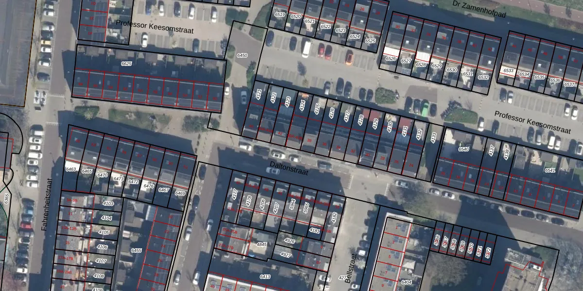 Het perceel waarop Daltonstraat 40-B staat heeft een oppervlakte van 103 m². Dit is een middelgroot perceel. De perceeloppervlakte wordt geregistreerd door het Kadaster. Gedetailleerde informatie over de maten van dit perceel kunt u vinden in het rapport Kadastrale kaart met maatvoering van Daltonstraat 40-B.