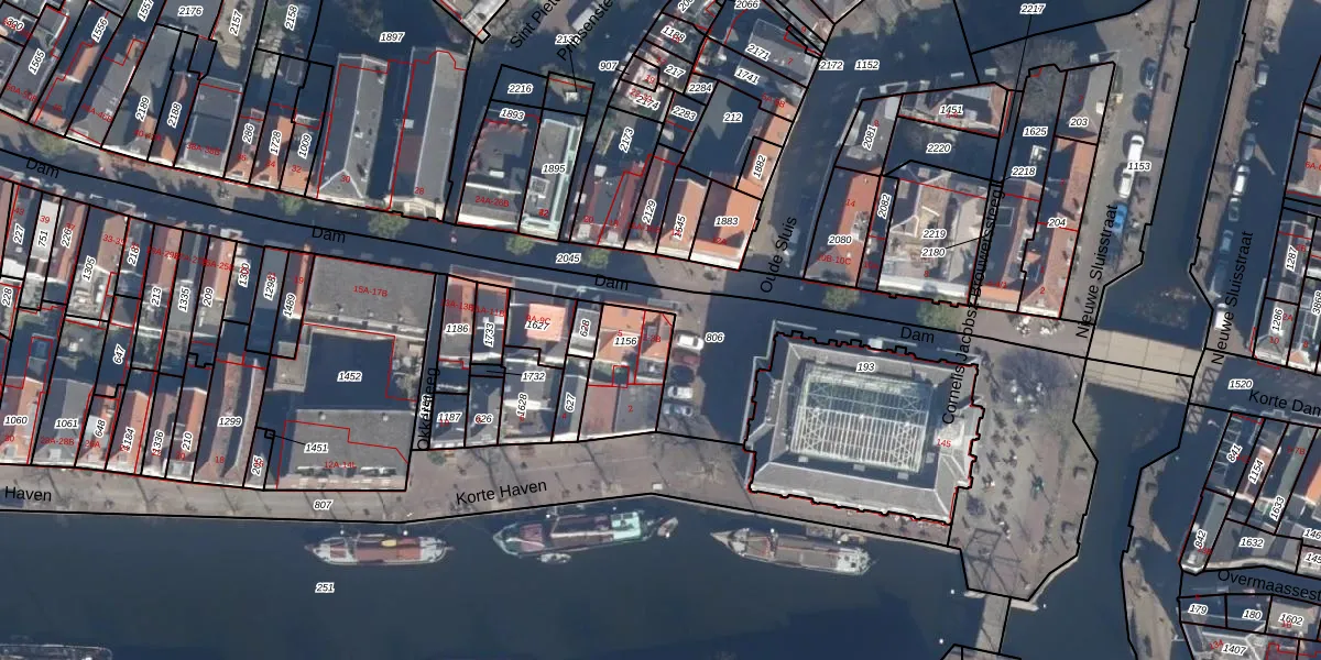 Het perceel waarop Dam 1 staat heeft een oppervlakte van 209 m². Dit is een middelgroot perceel. De perceeloppervlakte wordt geregistreerd door het Kadaster. Gedetailleerde informatie over de maten van dit perceel kunt u vinden in het rapport Kadastrale kaart met maatvoering van Dam 1.