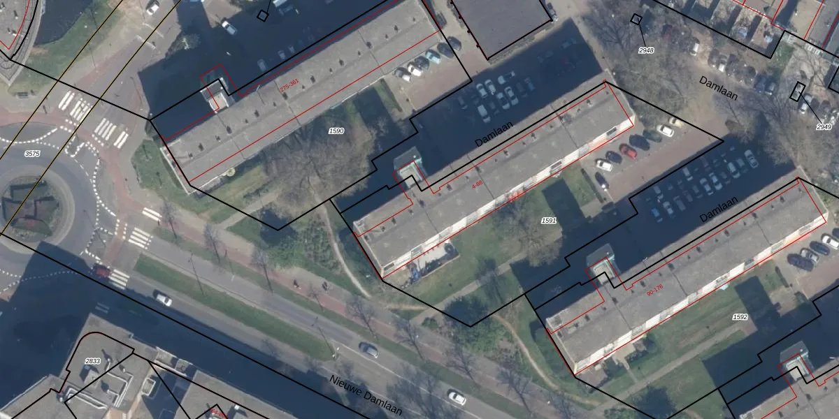 Het perceel waarop Damlaan 84 staat heeft een oppervlakte van 2458 m². Dit is een zeer groot perceel. De perceeloppervlakte wordt geregistreerd door het Kadaster. Gedetailleerde informatie over de maten van dit perceel kunt u vinden in het rapport Kadastrale kaart met maatvoering van Damlaan 84.