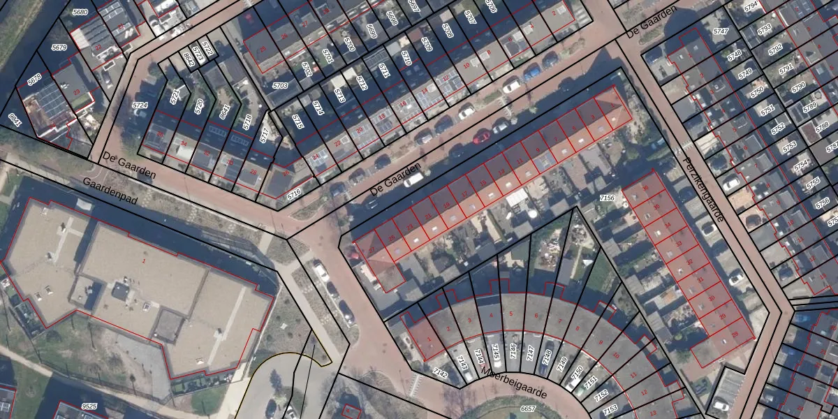 De Gaarden 21 is gelegen op kadastraal perceel SDM01Q7156. Deze kadastrale aanduiding is uniek en wordt gebruikt door het Kadaster om eigendomsrechten en andere zakelijke rechten vast te leggen. Het perceel maakt onderdeel uit van de kadastrale gemeente Schiedam.