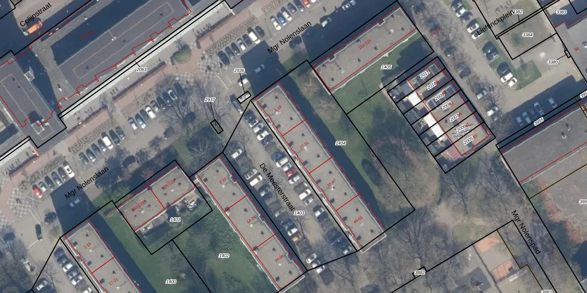 De Meesterstraat 29 is gelegen op kadastraal perceel SDM01H1404. Deze kadastrale aanduiding is uniek en wordt gebruikt door het Kadaster om eigendomsrechten en andere zakelijke rechten vast te leggen. Het perceel maakt onderdeel uit van de kadastrale gemeente Schiedam.
