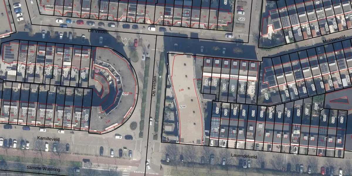De Velden 28 is gelegen op kadastraal perceel SDM01Q5290. Deze kadastrale aanduiding is uniek en wordt gebruikt door het Kadaster om eigendomsrechten en andere zakelijke rechten vast te leggen. Het perceel maakt onderdeel uit van de kadastrale gemeente Schiedam.