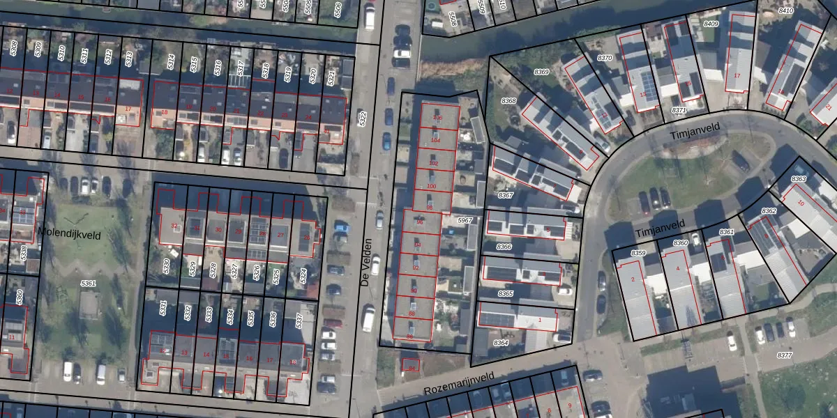 De Velden 98 is gelegen op kadastraal perceel SDM01Q5967. Deze kadastrale aanduiding is uniek en wordt gebruikt door het Kadaster om eigendomsrechten en andere zakelijke rechten vast te leggen. Het perceel maakt onderdeel uit van de kadastrale gemeente Schiedam.