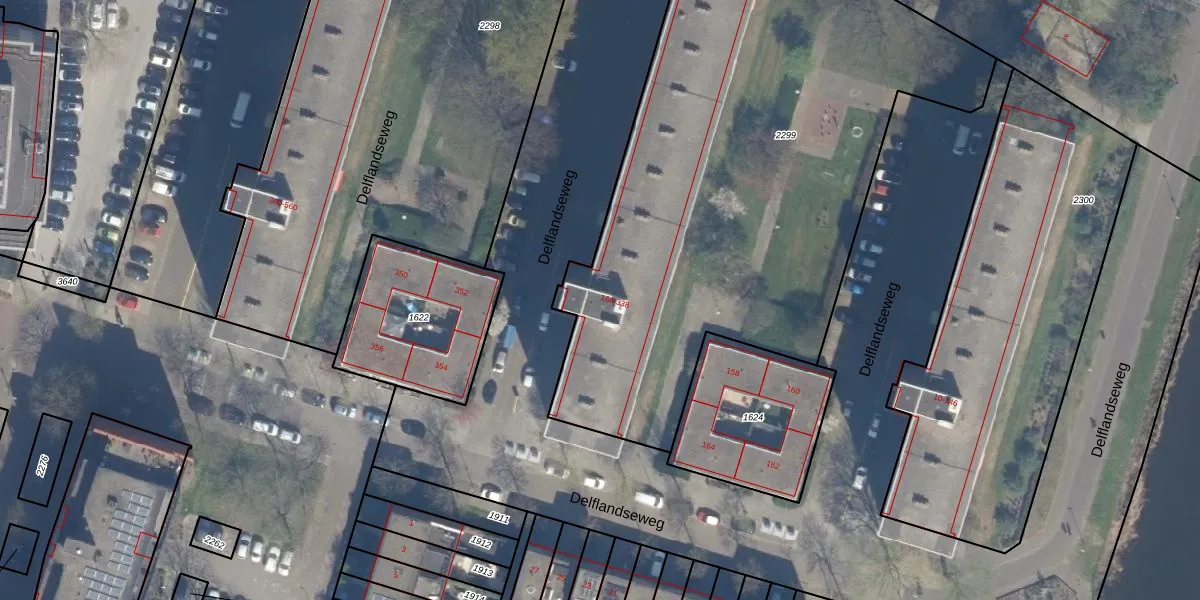 Delflandseweg 264 is gelegen op kadastraal perceel SDM01H2299. Deze kadastrale aanduiding is uniek en wordt gebruikt door het Kadaster om eigendomsrechten en andere zakelijke rechten vast te leggen. Het perceel maakt onderdeel uit van de kadastrale gemeente Schiedam.