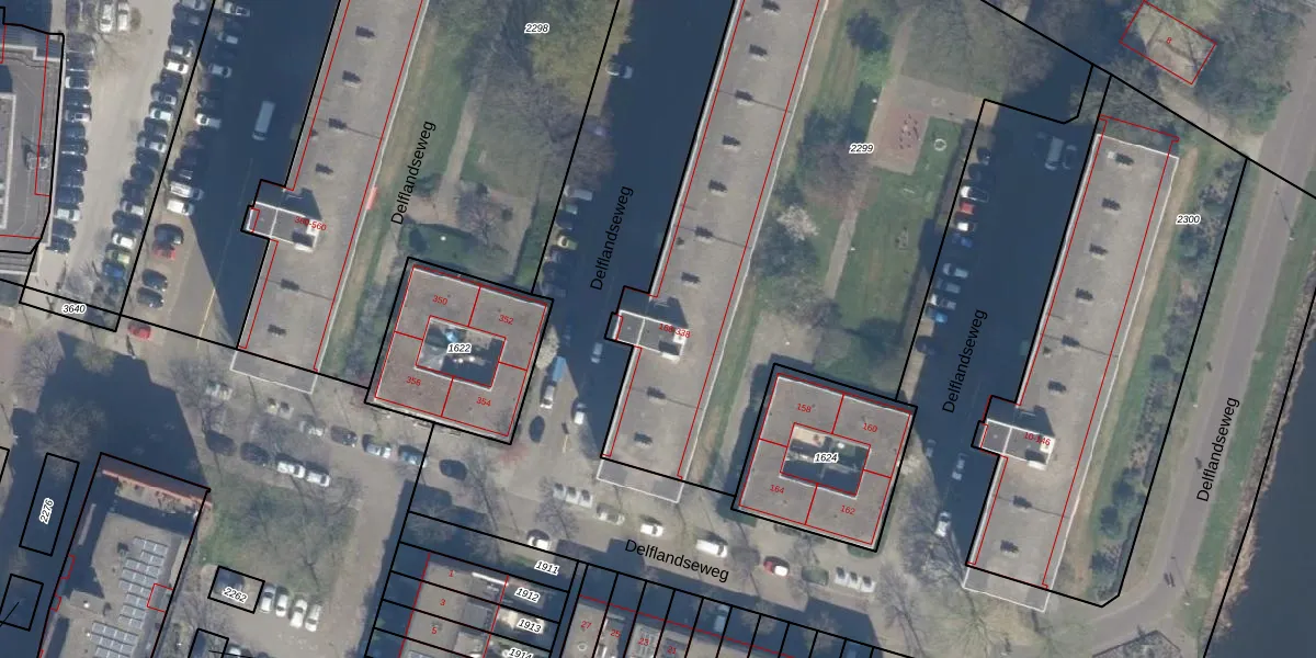 Delflandseweg 294 is gelegen op kadastraal perceel SDM01H2299. Deze kadastrale aanduiding is uniek en wordt gebruikt door het Kadaster om eigendomsrechten en andere zakelijke rechten vast te leggen. Het perceel maakt onderdeel uit van de kadastrale gemeente Schiedam.