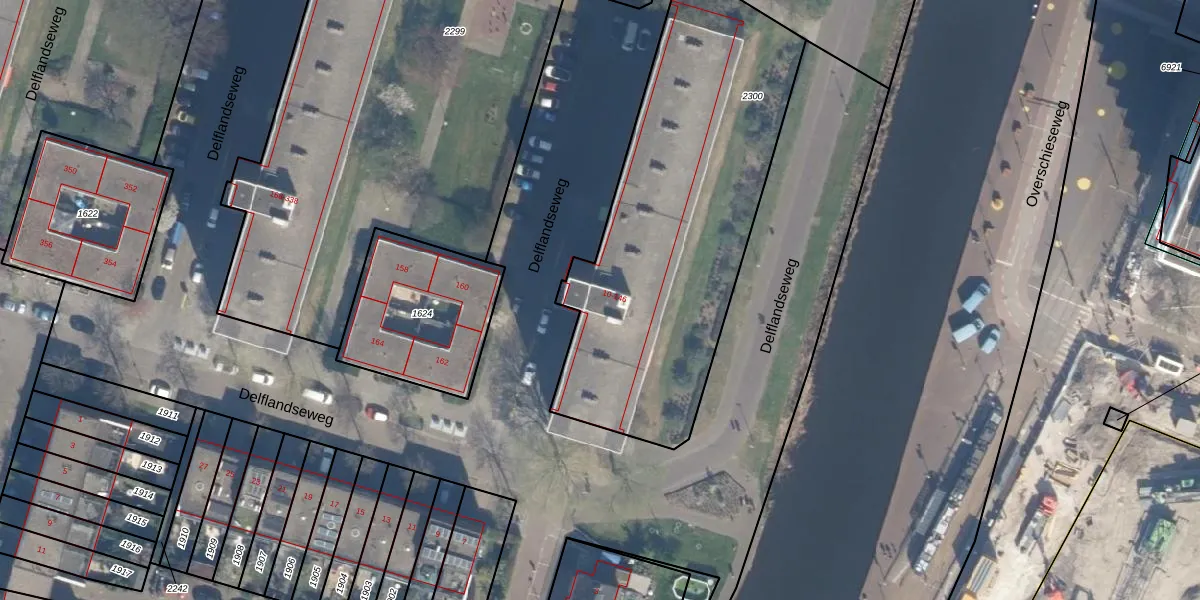 Delflandseweg 84 is gelegen op kadastraal perceel SDM01H2300. Deze kadastrale aanduiding is uniek en wordt gebruikt door het Kadaster om eigendomsrechten en andere zakelijke rechten vast te leggen. Het perceel maakt onderdeel uit van de kadastrale gemeente Schiedam.