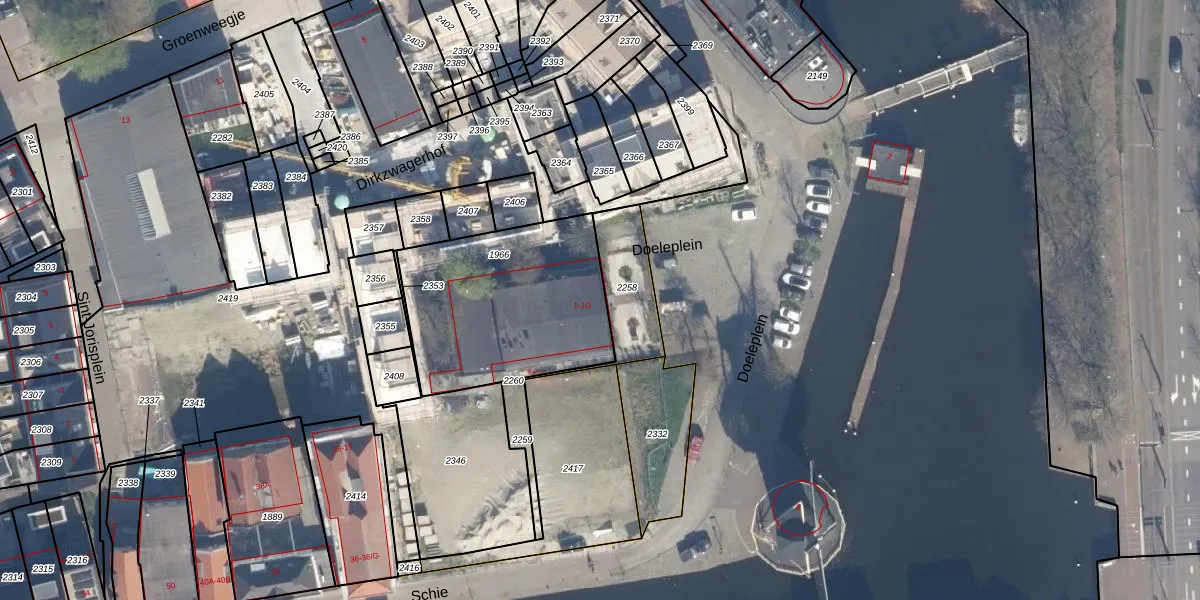 Doeleplein 1-A is gelegen op kadastraal perceel SDM01A1966. Deze kadastrale aanduiding is uniek en wordt gebruikt door het Kadaster om eigendomsrechten en andere zakelijke rechten vast te leggen. Het perceel maakt onderdeel uit van de kadastrale gemeente Schiedam.
