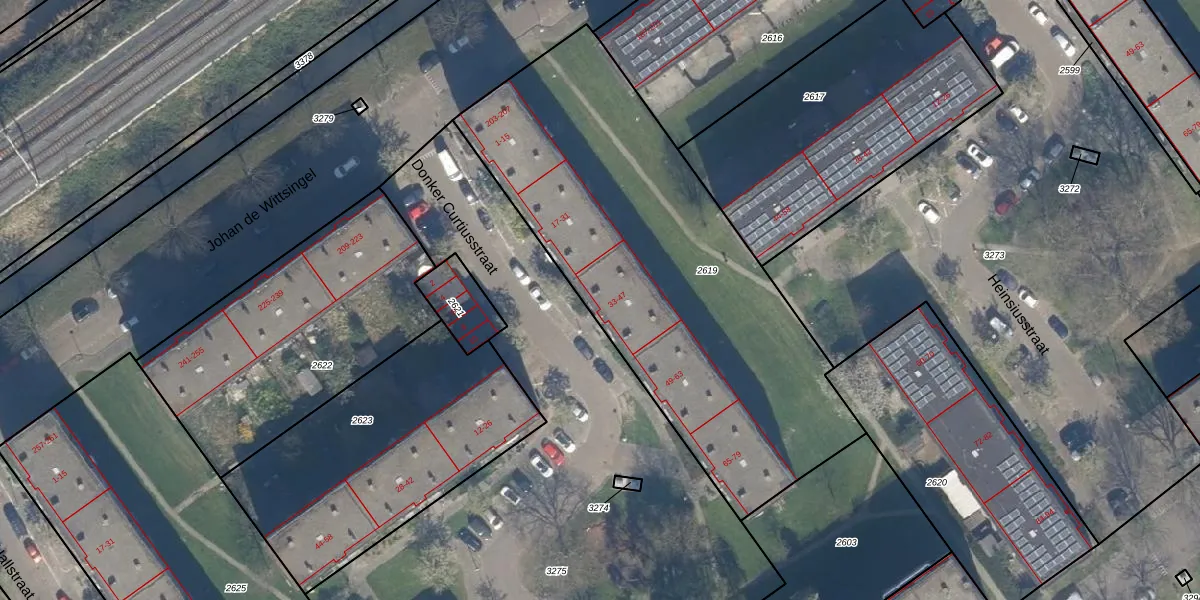 Het perceel waarop Donker Curtiusstraat 45 staat heeft een oppervlakte van 2247 m². Dit is een zeer groot perceel. De perceeloppervlakte wordt geregistreerd door het Kadaster. Gedetailleerde informatie over de maten van dit perceel kunt u vinden in het rapport Kadastrale kaart met maatvoering van Donker Curtiusstraat 45.