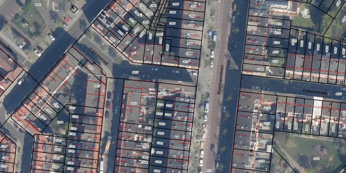 Het perceel waarop Edisonstraat 55-A staat heeft een oppervlakte van 215 m². Dit is een middelgroot perceel. De perceeloppervlakte wordt geregistreerd door het Kadaster. Gedetailleerde informatie over de maten van dit perceel kunt u vinden in het rapport Kadastrale kaart met maatvoering van Edisonstraat 55-A.