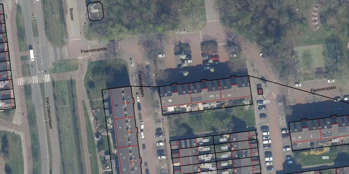 Faassenplein 42 is gelegen op kadastraal perceel SDM01Q2675. Deze kadastrale aanduiding is uniek en wordt gebruikt door het Kadaster om eigendomsrechten en andere zakelijke rechten vast te leggen. Het perceel maakt onderdeel uit van de kadastrale gemeente Schiedam.