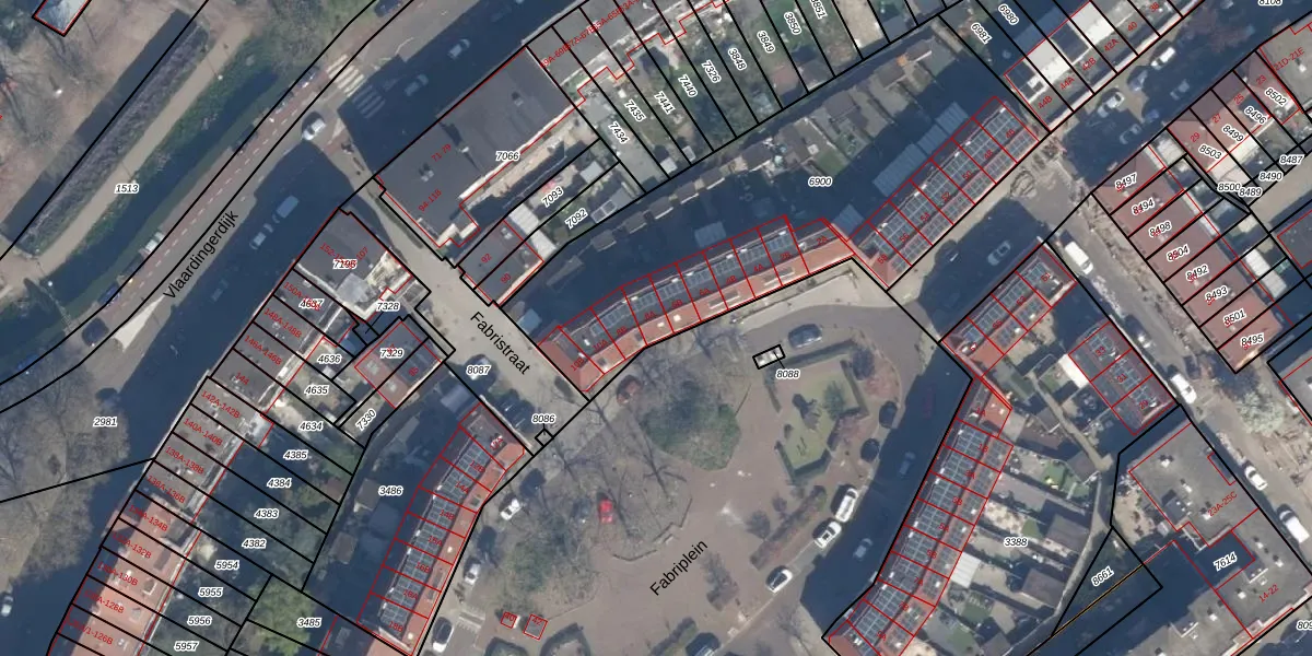 Fabriplein 8-A is gelegen op kadastraal perceel SDM01M6900. Deze kadastrale aanduiding is uniek en wordt gebruikt door het Kadaster om eigendomsrechten en andere zakelijke rechten vast te leggen. Het perceel maakt onderdeel uit van de kadastrale gemeente Schiedam.