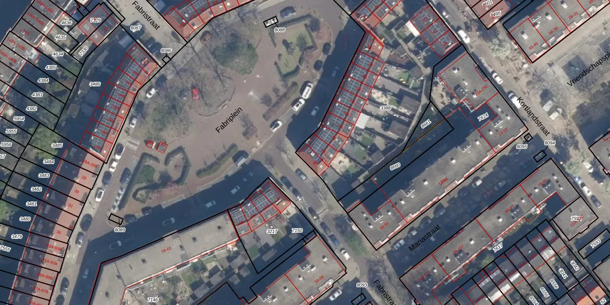Fabriplein 9-B is gelegen op kadastraal perceel SDM01M3388. Deze kadastrale aanduiding is uniek en wordt gebruikt door het Kadaster om eigendomsrechten en andere zakelijke rechten vast te leggen. Het perceel maakt onderdeel uit van de kadastrale gemeente Schiedam.