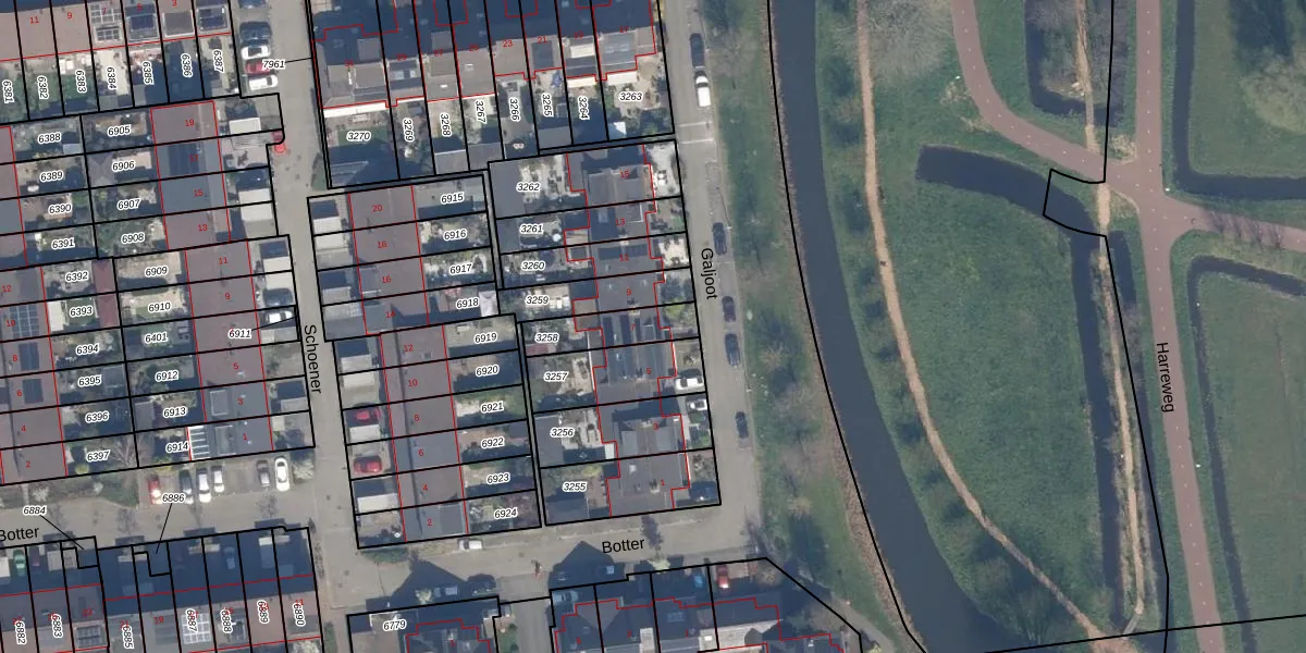 Galjoot 7 is gelegen op kadastraal perceel SDM01Q3258. Deze kadastrale aanduiding is uniek en wordt gebruikt door het Kadaster om eigendomsrechten en andere zakelijke rechten vast te leggen. Het perceel maakt onderdeel uit van de kadastrale gemeente Schiedam.
