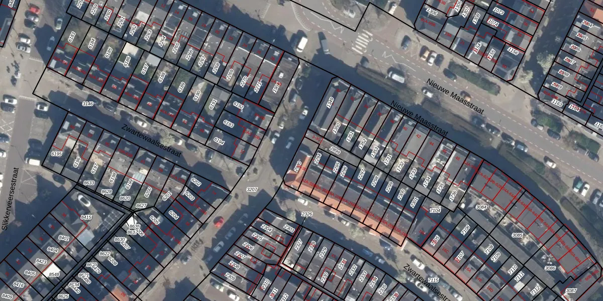 Het perceel waarop het adres ligt is SDM01-M-2900. De afkorting 'SDM01' staat voor kadastrale gemeente Schiedam. De gemiddelde perceelgrootte in Schiedam is 1011,07 m². Dit perceel is kleiner: de perceeloppervlakte bedraagt 89 m². Het grootste perceel in de kadastrale gemeente is 53,5 ha. Het kleinste perceel heeft een oppervlakte van 0 m². Op het perceel zijn 3 adressen aanwezig. De huidige grenzen van het perceel zijn digitaal in de Basisregistratie Kadaster (BRK) geregistreerd op 01-10-1998.