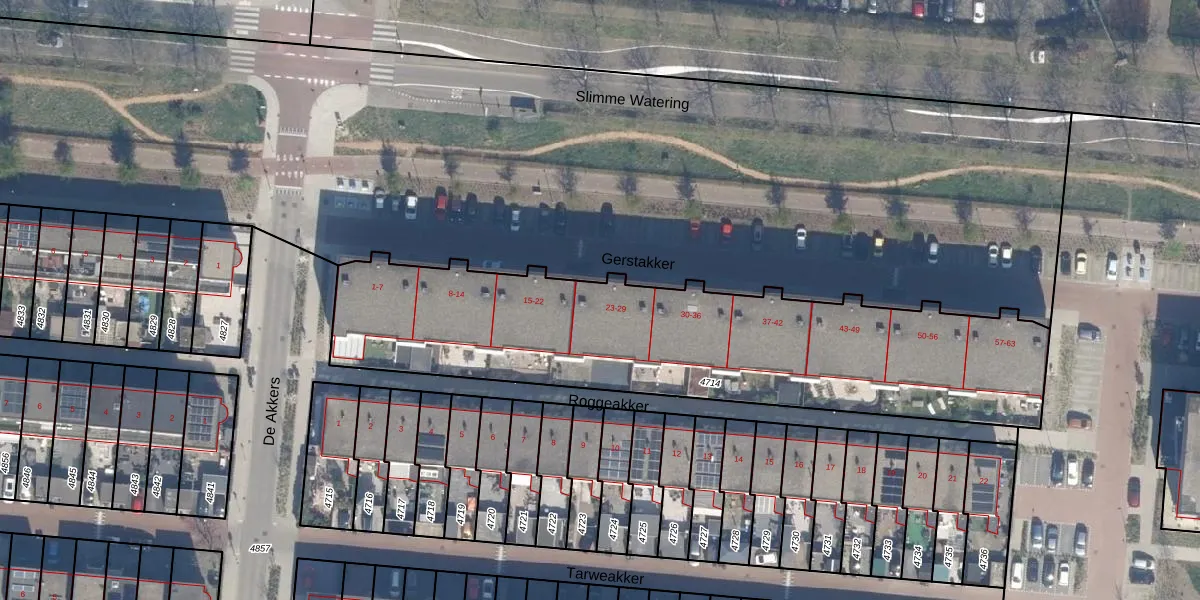 Het perceel waarop Gerstakker 23 staat heeft een oppervlakte van 2160 m². Dit is een zeer groot perceel. De perceeloppervlakte wordt geregistreerd door het Kadaster. Gedetailleerde informatie over de maten van dit perceel kunt u vinden in het rapport Kadastrale kaart met maatvoering van Gerstakker 23.