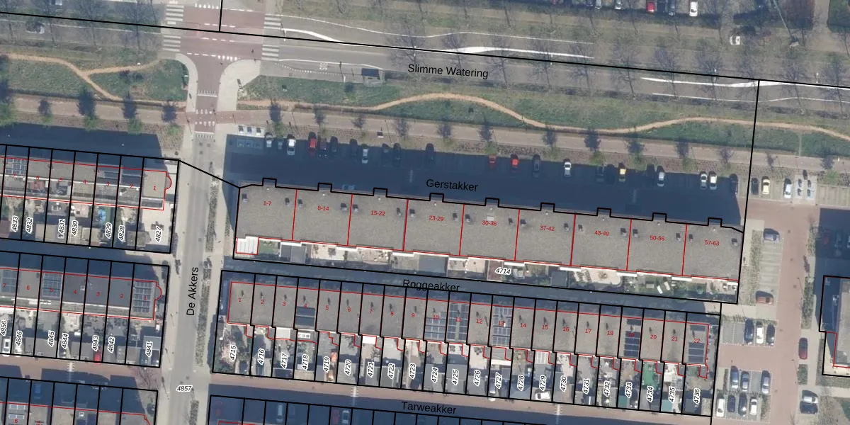 Gerstakker 29 is gelegen op kadastraal perceel SDM01Q4714. Deze kadastrale aanduiding is uniek en wordt gebruikt door het Kadaster om eigendomsrechten en andere zakelijke rechten vast te leggen. Het perceel maakt onderdeel uit van de kadastrale gemeente Schiedam.