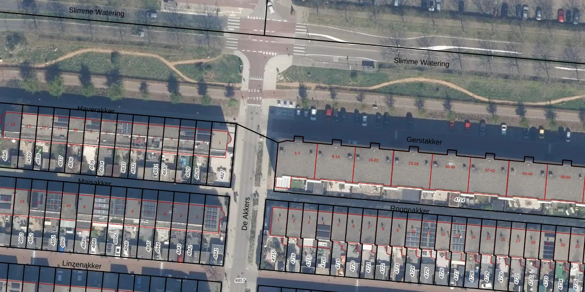 Gerstakker 5 is gelegen op kadastraal perceel SDM01Q4714. Deze kadastrale aanduiding is uniek en wordt gebruikt door het Kadaster om eigendomsrechten en andere zakelijke rechten vast te leggen. Het perceel maakt onderdeel uit van de kadastrale gemeente Schiedam.