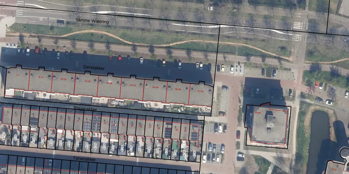 Het perceel waarop Gerstakker 51 staat heeft een oppervlakte van 2160 m². Dit is een zeer groot perceel. De perceeloppervlakte wordt geregistreerd door het Kadaster. Gedetailleerde informatie over de maten van dit perceel kunt u vinden in het rapport Kadastrale kaart met maatvoering van Gerstakker 51.
