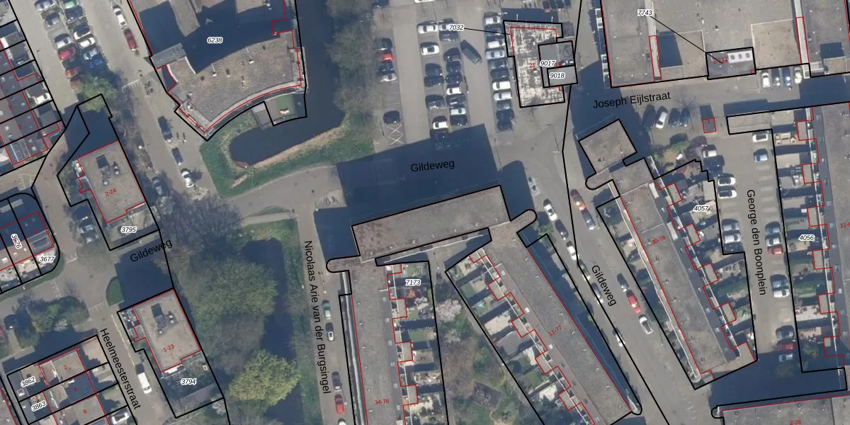 Gildeweg 41 is gelegen op kadastraal perceel SDM01Q7173. Deze kadastrale aanduiding is uniek en wordt gebruikt door het Kadaster om eigendomsrechten en andere zakelijke rechten vast te leggen. Het perceel maakt onderdeel uit van de kadastrale gemeente Schiedam.
