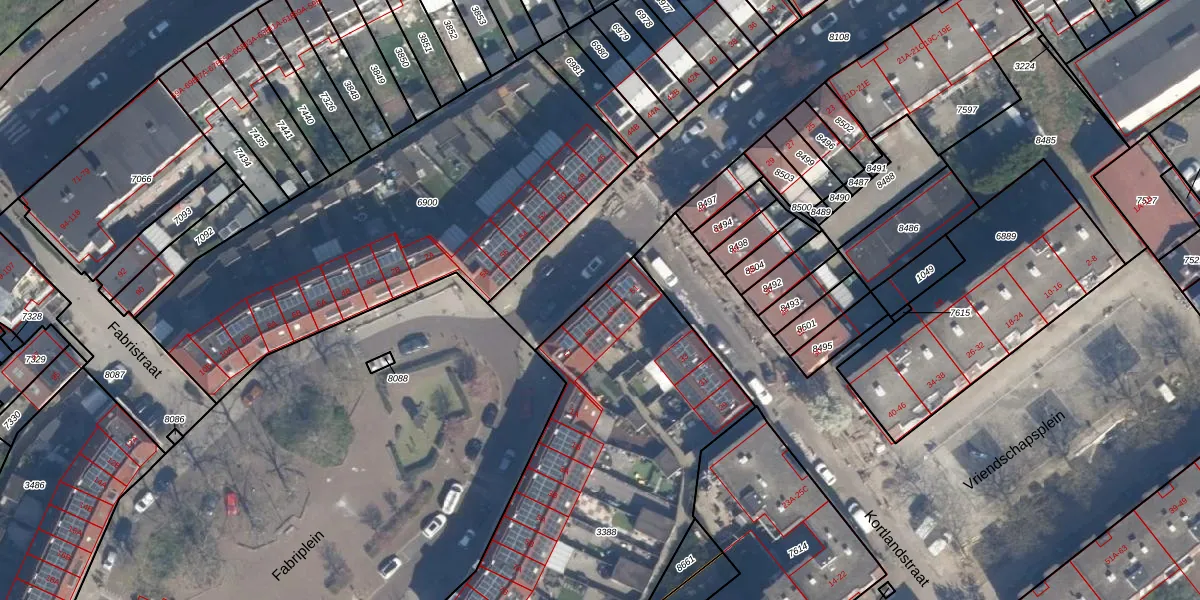 Het perceel waarop Gordonstraat 53 staat heeft een oppervlakte van 1956 m². Dit is een zeer groot perceel. De perceeloppervlakte wordt geregistreerd door het Kadaster. Gedetailleerde informatie over de maten van dit perceel kunt u vinden in het rapport Kadastrale kaart met maatvoering van Gordonstraat 53.