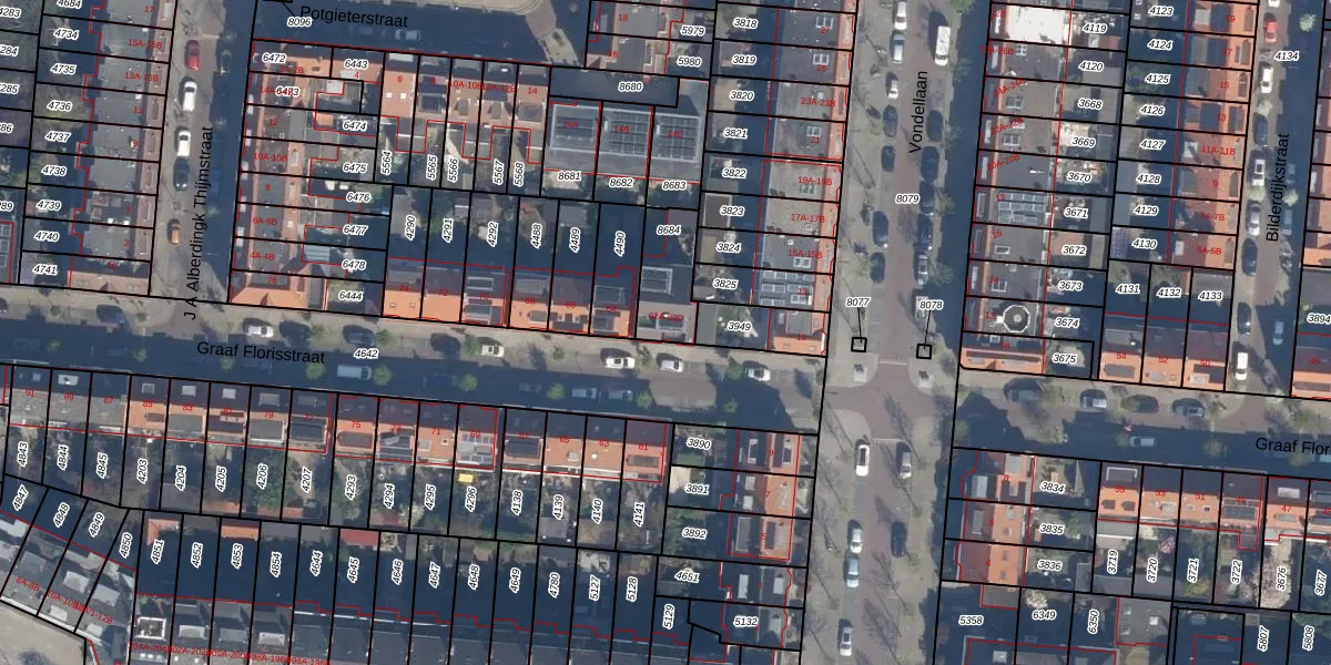 Het perceel waarop Graaf Florisstraat 62-A staat heeft een oppervlakte van 168 m². Dit is een middelgroot perceel. De perceeloppervlakte wordt geregistreerd door het Kadaster. Gedetailleerde informatie over de maten van dit perceel kunt u vinden in het rapport Kadastrale kaart met maatvoering van Graaf Florisstraat 62-A.