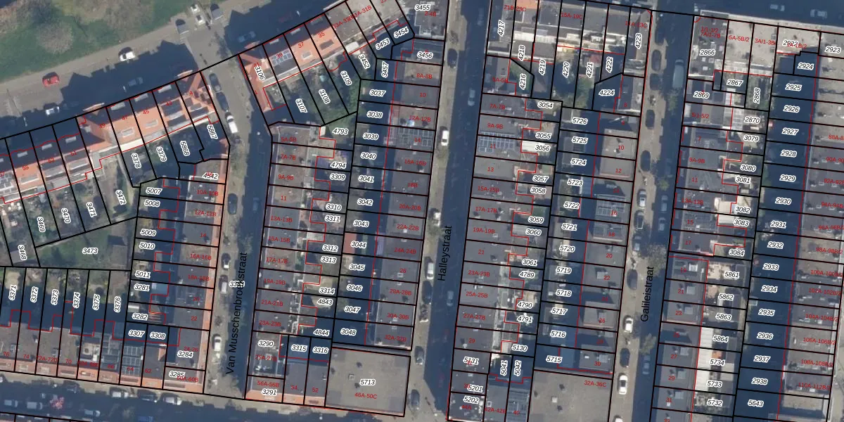 Het perceel waarop Halleystraat 20-B staat heeft een oppervlakte van 99 m². Dit is een klein perceel. De perceeloppervlakte wordt geregistreerd door het Kadaster. Gedetailleerde informatie over de maten van dit perceel kunt u vinden in het rapport Kadastrale kaart met maatvoering van Halleystraat 20-B.