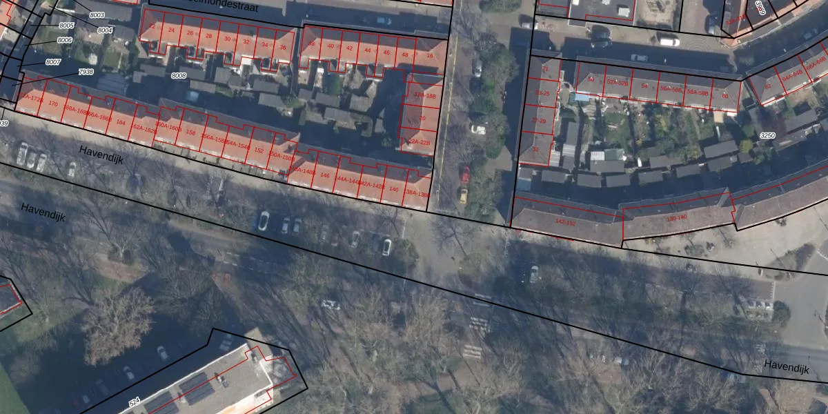 Havendijk 138-B is gelegen op kadastraal perceel SDM01M8008. Deze kadastrale aanduiding is uniek en wordt gebruikt door het Kadaster om eigendomsrechten en andere zakelijke rechten vast te leggen. Het perceel maakt onderdeel uit van de kadastrale gemeente Schiedam.