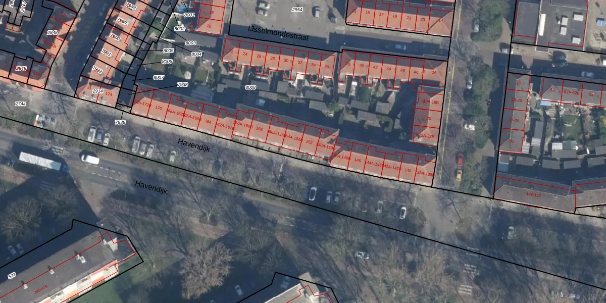Het perceel waarop Havendijk 152 staat heeft een oppervlakte van 4700 m². Dit is een zeer groot perceel. De perceeloppervlakte wordt geregistreerd door het Kadaster. Gedetailleerde informatie over de maten van dit perceel kunt u vinden in het rapport Kadastrale kaart met maatvoering van Havendijk 152.