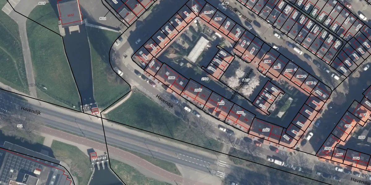 Havendijk 216 is gelegen op kadastraal perceel SDM01M2695. Deze kadastrale aanduiding is uniek en wordt gebruikt door het Kadaster om eigendomsrechten en andere zakelijke rechten vast te leggen. Het perceel maakt onderdeel uit van de kadastrale gemeente Schiedam.
