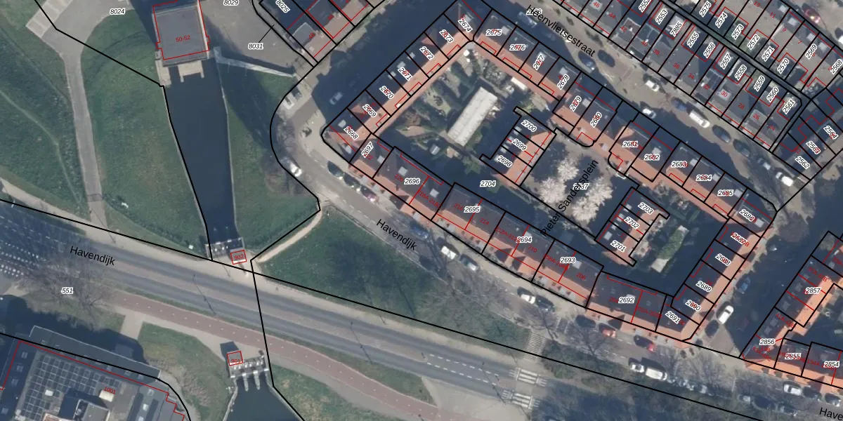 Havendijk 218-A is gelegen op kadastraal perceel SDM01M2696. Deze kadastrale aanduiding is uniek en wordt gebruikt door het Kadaster om eigendomsrechten en andere zakelijke rechten vast te leggen. Het perceel maakt onderdeel uit van de kadastrale gemeente Schiedam.