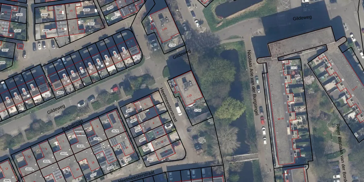 Het perceel waarop Heelmeesterstraat 23 staat heeft een oppervlakte van 363 m². Dit is een groot perceel. De perceeloppervlakte wordt geregistreerd door het Kadaster. Gedetailleerde informatie over de maten van dit perceel kunt u vinden in het rapport Kadastrale kaart met maatvoering van Heelmeesterstraat 23.