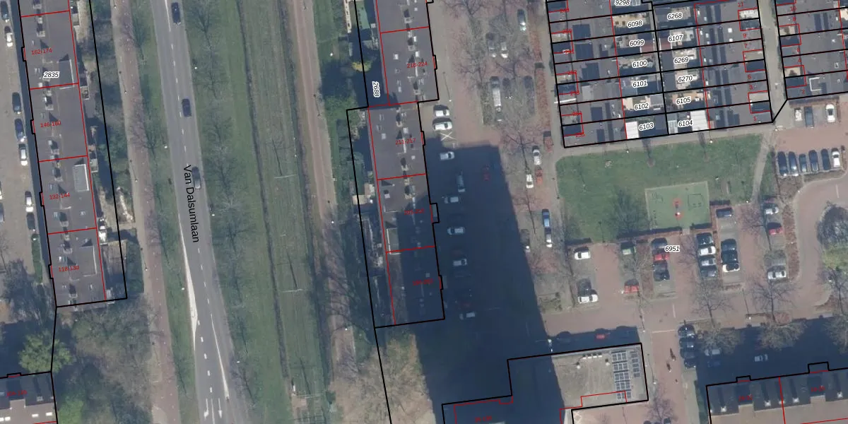 Het perceel waarop het adres ligt is SDM01-Q-2688. De afkorting 'SDM01' staat voor kadastrale gemeente Schiedam. Het perceel is met 1752 m² relatief groot. Het gemiddelde ligt in de kadastrale gemeente Schiedam op 1011,07 m². Het kleinste perceel in de kadastrale gemeente is 0 m² groot. De grootste perceeloppervlakte is 53,5 ha. Op het perceel zijn 44 adressen aanwezig. De huidige grenzen van het perceel zijn digitaal in de Basisregistratie Kadaster (BRK) geregistreerd op 22-05-2002.