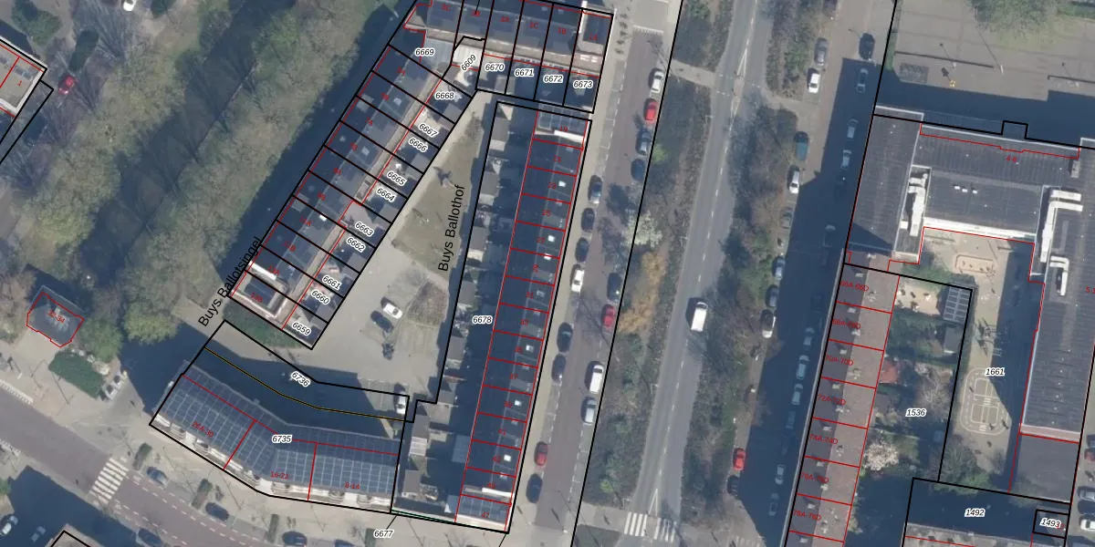 Het perceel waarop het adres ligt is SDM01-I-6678. De afkorting 'SDM01' staat voor kadastrale gemeente Schiedam. Het perceel is met 1439 m² relatief groot. Het gemiddelde ligt in de kadastrale gemeente Schiedam op 1011,07 m². Het kleinste perceel in de kadastrale gemeente is 0 m² groot. De grootste perceeloppervlakte is 53,5 ha. Op het perceel zijn 15 adressen aanwezig. De huidige grenzen van het perceel zijn digitaal in de Basisregistratie Kadaster (BRK) geregistreerd op 13-07-2021.