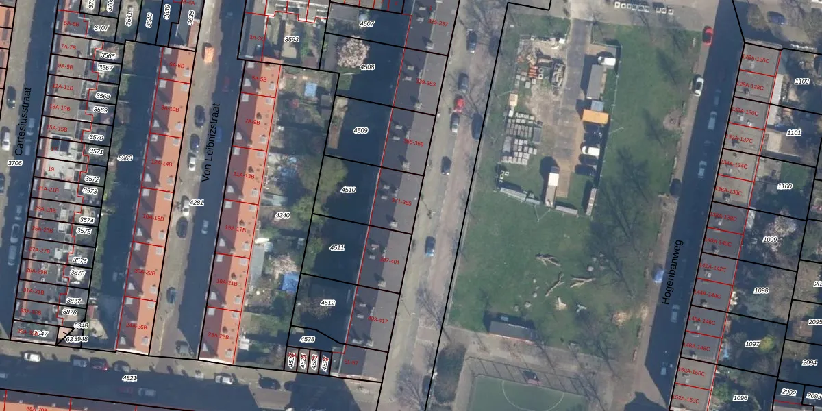 Hogenbanweg 375 is gelegen op kadastraal perceel SDM01I4510. Deze kadastrale aanduiding is uniek en wordt gebruikt door het Kadaster om eigendomsrechten en andere zakelijke rechten vast te leggen. Het perceel maakt onderdeel uit van de kadastrale gemeente Schiedam.