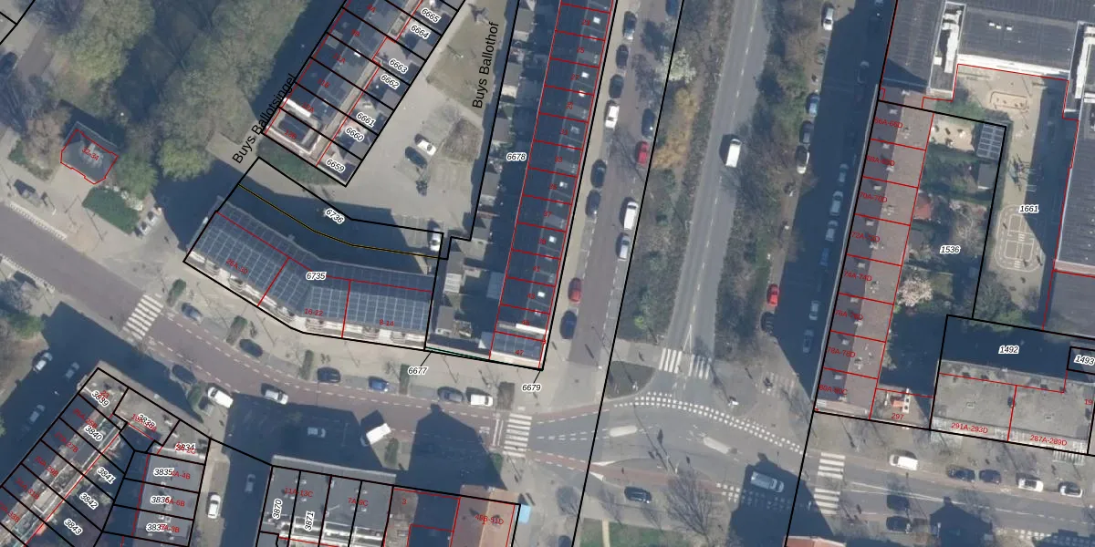Het perceel waarop het adres ligt is SDM01-I-6678. De afkorting 'SDM01' staat voor kadastrale gemeente Schiedam. Het perceel is met 1439 m² relatief groot. Het gemiddelde ligt in de kadastrale gemeente Schiedam op 1011,07 m². Het kleinste perceel in de kadastrale gemeente is 0 m² groot. De grootste perceeloppervlakte is 53,5 ha. Op het perceel liggen in totaal 15 adressen. De huidige grenzen van het perceel zijn digitaal in de Basisregistratie Kadaster (BRK) geregistreerd op 13-07-2021.