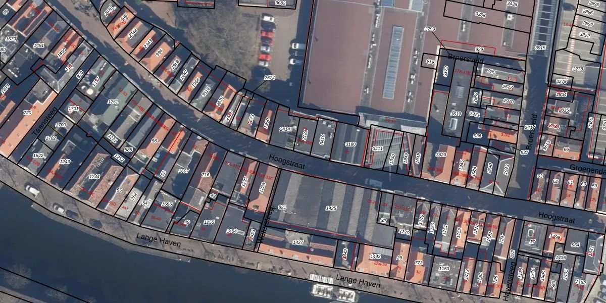 Het perceel waarop Hoogstraat 46 staat heeft een oppervlakte van 68 m². Dit is een klein perceel. De perceeloppervlakte wordt geregistreerd door het Kadaster. Gedetailleerde informatie over de maten van dit perceel kunt u vinden in het rapport Kadastrale kaart met maatvoering van Hoogstraat 46.