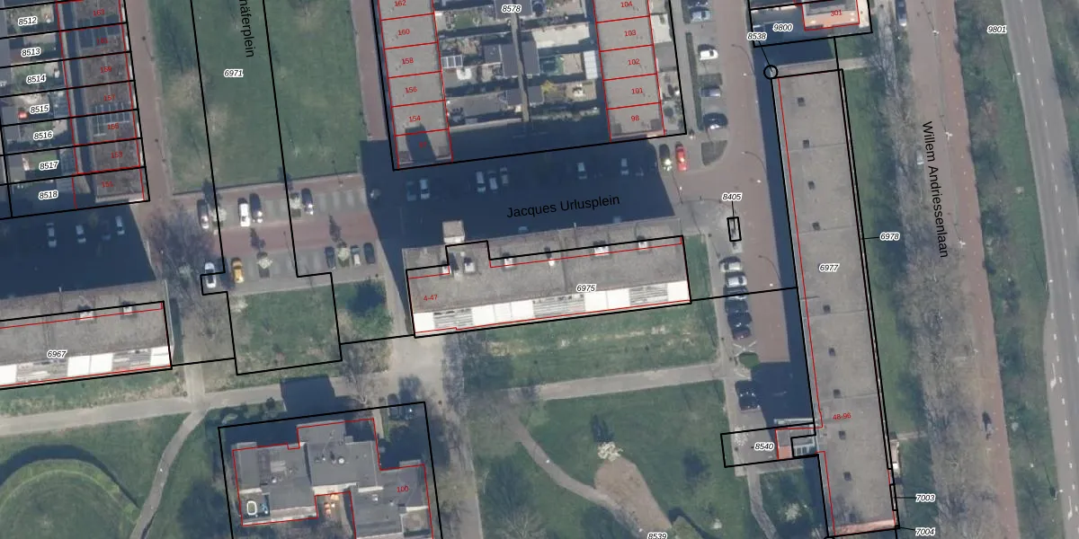 Jacques Urlusplein 46 is gelegen op kadastraal perceel SDM01Q6975. Deze kadastrale aanduiding is uniek en wordt gebruikt door het Kadaster om eigendomsrechten en andere zakelijke rechten vast te leggen. Het perceel maakt onderdeel uit van de kadastrale gemeente Schiedam.