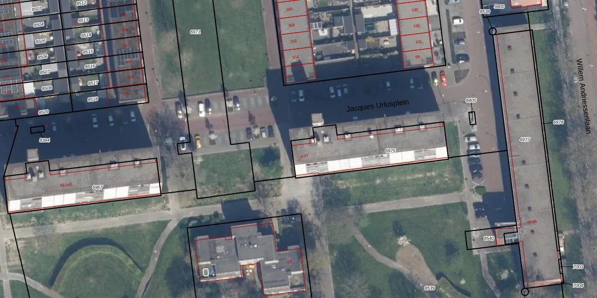 Jacques Urlusplein 5 is gelegen op kadastraal perceel SDM01Q6975. Deze kadastrale aanduiding is uniek en wordt gebruikt door het Kadaster om eigendomsrechten en andere zakelijke rechten vast te leggen. Het perceel maakt onderdeel uit van de kadastrale gemeente Schiedam.