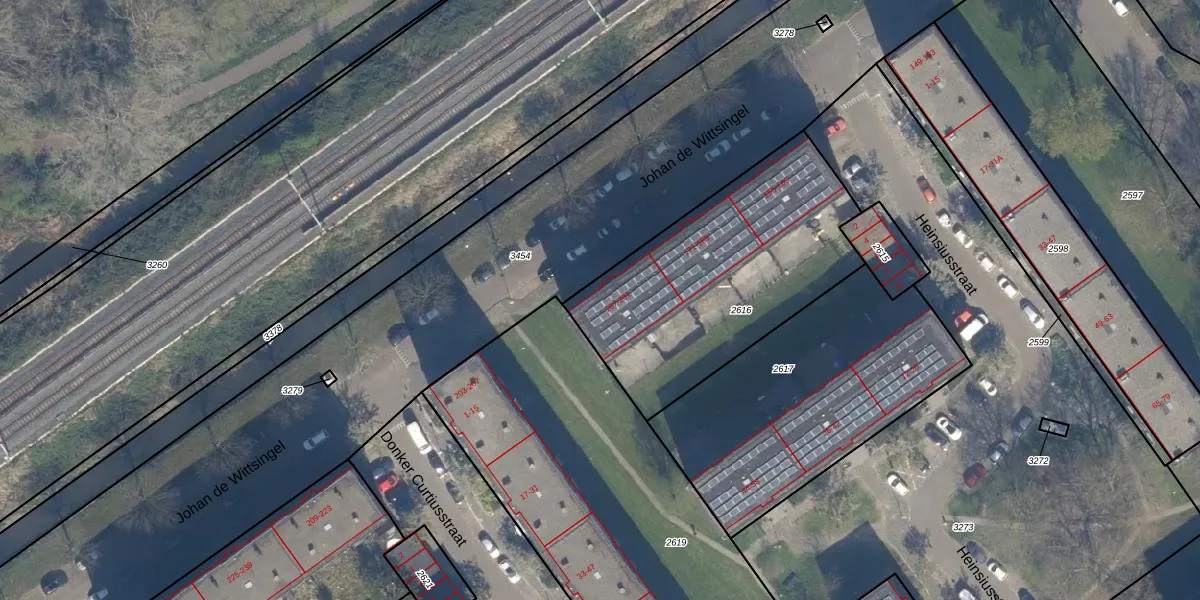 Het perceel waarop Johan de Wittsingel 191 staat heeft een oppervlakte van 1161 m². Dit is een zeer groot perceel. De perceeloppervlakte wordt geregistreerd door het Kadaster. Gedetailleerde informatie over de maten van dit perceel kunt u vinden in het rapport Kadastrale kaart met maatvoering van Johan de Wittsingel 191.